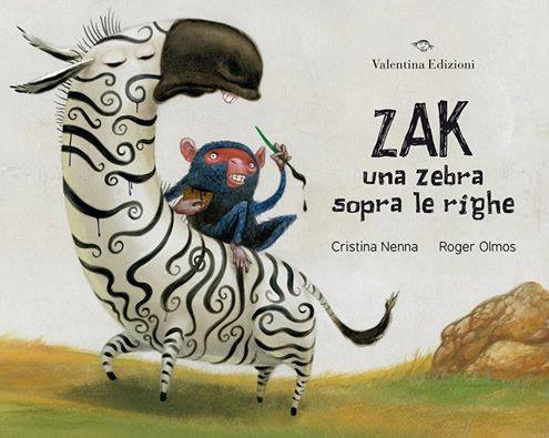 Scritto da Cristina Nenna con le geniali illustrazioni di Roger Olmos (tutte tavole ad olio!)è pubblicato da Valentina Edizioni. L’albo racconta la storia di Zak, uno zebrotto simpatico e intraprendente, in un mondo di zebre quasi identiche in cui è difficile perfino riconoscersi. La sua missione sarà quella di differenziarsi dagli altri per diventare unico. Una divertente avventura in cui si scopre che il proprio vero segno distintivo non è da cercare fuori di sé…