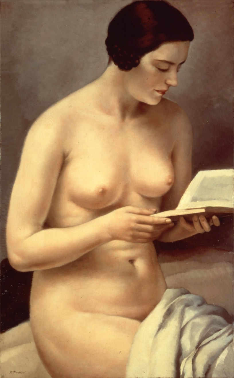 La seconda sezione, incentrata nel periodo subito dopo la prima guerra mondiale, Trombadori è vicino al Movimento “Valori Plastici” pur non aderendovi, si lascia suggestionare dal cosiddetto “Realismo Magico” di Bontempelli tentando di mettere in rapporto dialettico le istanze dell’avanguardia con quelle della tradizione. Sono di questo periodo i ritratti significativi di personaggi dell’epoca (era ritrattista molto richiesto): Italo Balbo, la moglie Emanuela, la principessa Pamphili e molte nobildonne romane. Accanto ai ritratti e, dello stesso periodo, sono i bellissimi nudi, tra cui quello dell’immagine di mostra “Fanciulla nuda che legge” (1929) e uno “Fanciulla nuda” (1934), proveniente dalla Civica Galleria d’Arte Moderna Empedocle Restivo di Palermo, la particolarità di questo nudo è dato dalla posa della fanciulla, ritratta in piedi di fronte allo spettatore nello studio del pittore, riconoscibile dalla tela che si scorge alla sua destra. Fanno parte dello stesso periodo i quadri di paesaggi come “Isola Sacra” (Chiara luce) (1935) o il “Paese degli alberi spogli” (1935ca), “Via Appia” (1930).