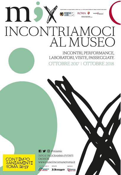 Incontri con scrittori e disegnatori, performance di arte contemporanea, ma anche esperienze multiculturali e inedite modalità di fruizione artistica messe al servizio dei visitatori. Tutto questo è MIX – Incontriamoci al museo, il nuovo progetto di attività finalizzate alla valorizzazione del patrimonio artistico museale e all’aggregazione del pubblico promosso da Roma Capitale, Assessorato alla Crescita culturale – Sovrintendenza Capitolina ai Beni Culturali, con l’organizzazione di Zètema Progetto Cultura. Il progetto è stato finanziato dalla Regione Lazio con la legge n. 26 del 23 ottobre 2009, avviso pubblico finalizzato allo sviluppo dei sistemi di servizi culturali.