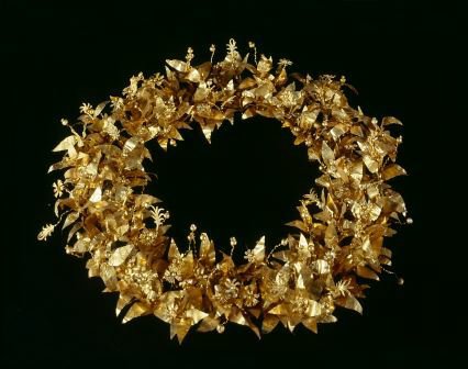 Fig. 4 Corredo di Tomba femminile III sec.a.C. dalla Necropoli di Montefortino d’Arcevia, Corona d’oro, Ancona Museo A.N. delle Marche