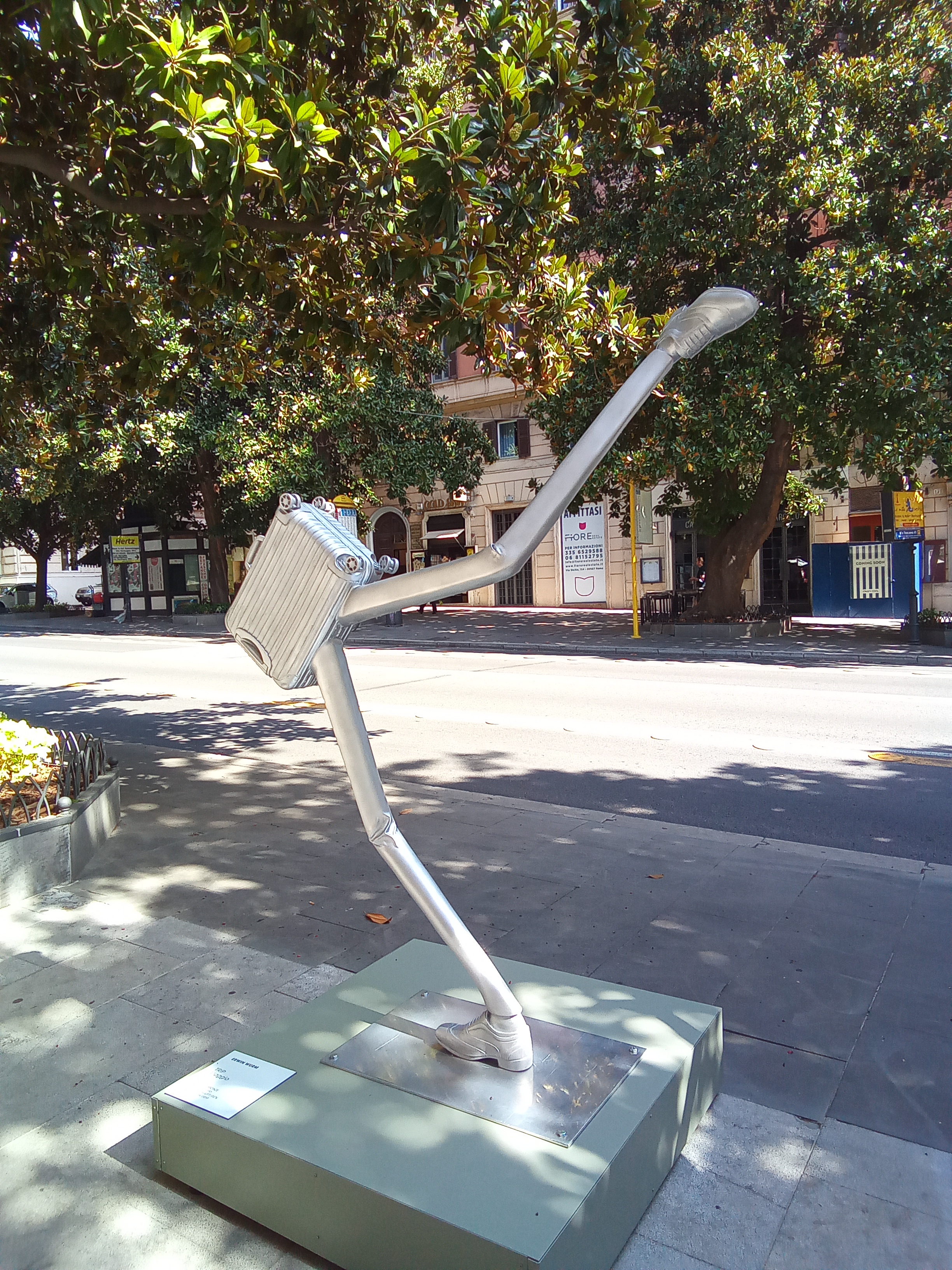 Via Veneto e, più in generale, Roma, dunque, si rivelano teatro ideale per la riflessione artistica di Wurm. Fuse in alluminio e bronzo e, in questo modo, consacrate all’eternità, le sue Valigie rendono “infinito” l’istante. Oggetti comuni, apparentemente banali, vengono elevati allo status di opere arte. La loro presenza, nel centro storico di Roma, diviene provocazione e invito – ironico ma serio – a meditare su come e quanto si possa dare al quotidiano una dimensione aulica. La “passeggiata” in via Veneto offre l’occasione, di fatto, per guardarci allo specchio, interrogarci su chi siamo e su come siamo diventati. Magari anche su come vorremmo essere.