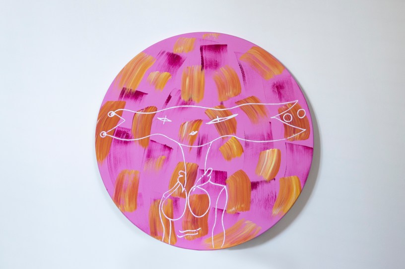 Invitata da Daina Maja Titonel a chiudere un ciclo espositivo di due anni dedicato alle artiste, Ria Lussi esprime – con leggerezza e ironia, ma non senza provocatoria virulenza – il suo punto di vista sullo “spinoso” tema della parità di genere nel mondo dell’arte contemporanea, esponendo diciassette ironici autoritratti ad acrilico – in formato “tondo” – dove gli aggettivi attribuiti di volta in volta alla diversa “Rosa”, suggeriscono una chiave di lettura delle candide e metamorfiche figure che emergono da una ricercata variazione sul colore.