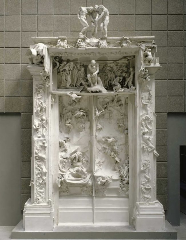 Altra imponente opera è la versione in gesso della monumentale e celeberrima Porta dell’Inferno di Auguste Rodin (modello di fusione in scala 1:1), realizzata nel 1989 per la fusione di uno degli ultimi esemplari bronzei dell’opera. Concesso in prestito dal Musée Rodin di Parigi, il colossale manufatto, alto 7 metri e collocato all’inizio del percorso espositivo, rappresenta il vertice delle riflessioni artistiche di tutti i tempi sul poema di Dante.