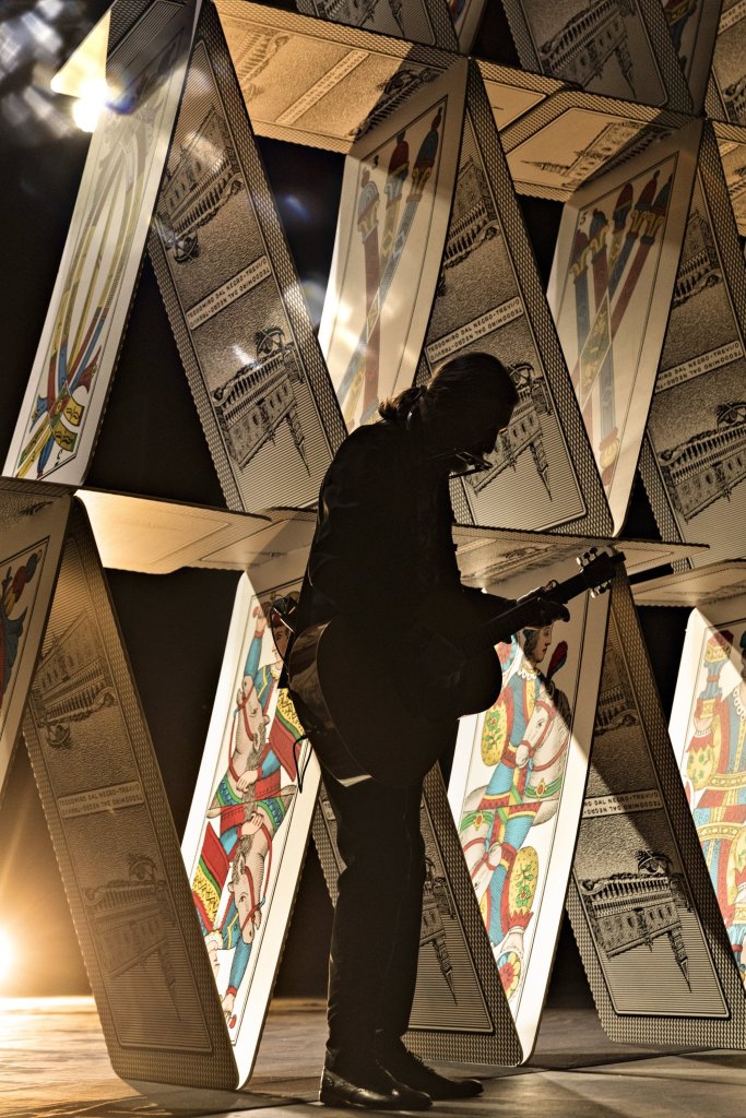 Si parte dalla considerazione sul peso del benessere (l’Artificiale) in rapporto al peso della biomassa (il Naturale) costruito sul castello di carte, in scena, a rappresentare la fragilità di un equilibrio ecologico, naturale ed artificiale continuamente ridefinito e squilibrato.