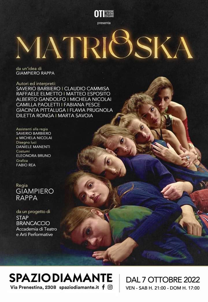 Matrioska, è un dramma corale, dove storie apparentemente distanti sono invece intersecate le une alle altre. È la storia delle “vittime” e dei “carnefici” ed entrambi si alternano nel dipanarsi della storia, come un monito a conoscersi, a scendere in profondità e a non mettere la testa sotto la sabbia o la meccanicità può risucchiare in un’esistenza che è destinata a ripetersi. Essere considerati oggetti, essere amati nel modo sbagliato, essere il bersaglio dell’abuso del potere di qualcuno è una catena pesante che si propaga lentamente e inesorabilmente sino allo stigma fatale. Un modo di fare teatro che ti entra nel sangue, vero, contemporaneo, che svela l’obbrobrio dei luoghi comuni e chiarisce che la responsabilità è di tutti, tutti quelli che si voltano altrove credendo che non li riguardi. Gli attori sono giovanissimi, commuovo per il candore e la capacità empatica.