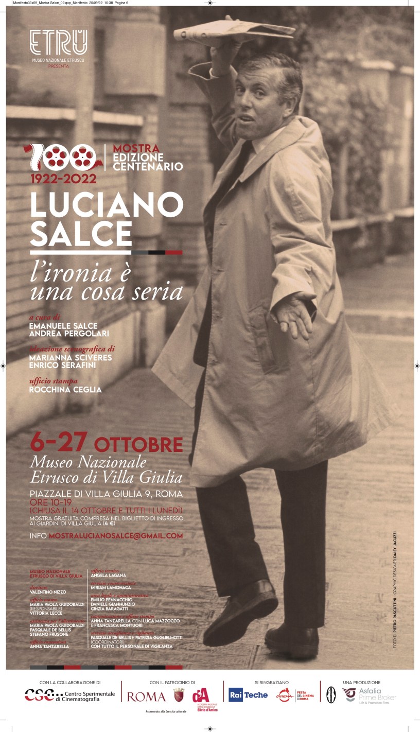 Il 25 settembre Luciano Salce avrebbe compiuto cento anni. In occasione dell’anniversario, una serie di iniziative ricorderà una delle figure più multiformi della cultura italiana del Novecento, capace di spaziare in ogni forma di spettacolo con un talento smisurato celato dietro l’ironia. Tali iniziative ruoteranno attorno alla Mostra Luciano Salce, L’ironia è una cosa seria – Edizione Centenario, a cura di Emanuele Salce e Andrea Pergolari, al Museo Nazionale Etrusco di Villa Giulia.