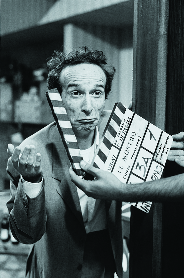 Saranno 160 le immagini selezionate tra le centinaia che Cattarinich scattò a Benigni sui set e in molte altre successive opportunità in cui l’attore e regista fece visita al fotografo romano nel suo studio di via Lazio a Roma, a pochi passi dalla Casa del Cinema. Ci saranno le gigantografie di foto scattate nel ’95 per la promozione della tourneè di Tuttobenigni, i ritratti per la foto segnaletica de Il Mostro, incluso il manifesto originale, oltre a uno dei primi servizi fotografici fatti a Benigni da Mimmo nel 1993 per la rivista Max, replicato poi per il mensile Ciak e per molte altre riviste del settore. In una sala saranno predominanti le fotografie di scena originali realizzate durante le riprese de La voce della Luna di Federico Fellini nel 1990 e de Il Mostro nel 1994 mentre uno spazio importante sarà riservato alle nuove elaborazioni digitali realizzate da Armando Cattarinich, visibili tutte attraverso uno schermo ad eccezione di una immagine stampata su tela.