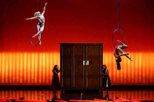 Approda al Teatro Ambra Jovinelli dal 16 al 27 novembre Nuda, la creazione della celebre Compagnia Finzi Pasca. Lo spettacolo è tratto dal romanzo di Daniele Finzi Pasca, artista di fama mondiale, noto per la sua capacità di spaziare tra teatro, danza, acrobazia, circo e opera con straordinaria fluidità, grazie al suo talento nel mescolare linguaggi diversi che danno vita a creazioni uniche. Già dalle prime battute il pubblico è condotto per mano nella storia: “Sono la prima di due gemelle. Mia sorella nacque vestita, uscì dalla pancia di mia mamma con una tunichetta immacolata. Io sono nata nuda, sporca, con gli occhi appiccicati. Mi tenevano nelle braccia quando apparve mia sorella, che arrivò al mondo facendo tanta sorpresa, e a me mi lasciarono cadere sul pavimento. Forse è per questa ragione che appena ho potuto coprirmi mi sono appiccicata addosso tutta un’armatura, e nuda a me nessuno mi ha più vista.”La storia è quella di due gemelle, cresciute in una famiglia “eccentrica” eppure così simile a quella di ognuno di noi, due sorelle che si toccano, si sfiorano, a volte si calpestano per poi riscoprirsi in un abbraccio di gioia e libertà ritrovata. Lo spettacolo è denso di mistero, la profondità e i suoi abissi restano in continuo dialogo con la leggerezza e la luminosità, i piani si sovrappongono e giocano tra loro trascinandoci in un’atmosfera onirica e fiabesca. I cinque straordinari artisti che interpretano e animano lo spettacolo, non solo occupano lo spazio teatrale, ma incarnano la narrazione poetica dal sapore onirico, sul filo dell’armonia tra il teatro fisico e la danza aerea.Il gioco acrobatico e teatrale è reso possibile da un sistema di volo innovativo e all’installazione di luci interattive che accompagnano il racconto trascinandoci in un potente universo sonoro che incanta e trasforma lo spettacolo in una esperienza magica e surreale da non perdere. Patrizia Cantatore