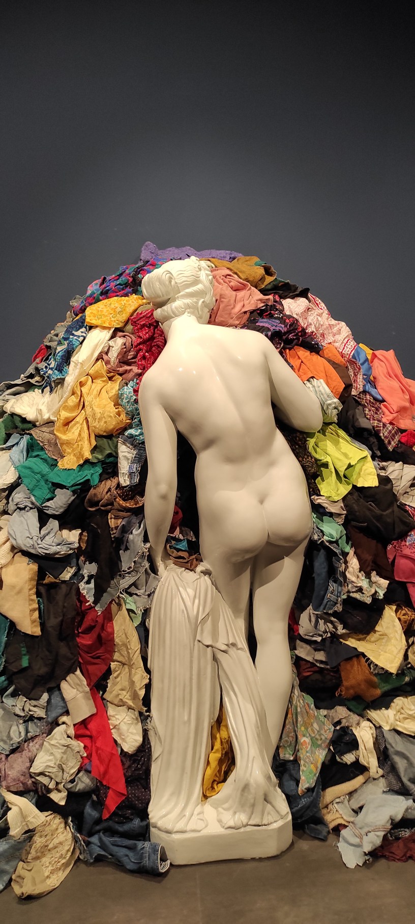 Nel percorso, le quattro grandi installazioni site specific prodotte da DART – Chiostro del Bramante, completano il percorso riproponendo e attualizzando lavori particolarmente significativi, come Grande sfera di giornali (1966 – 2023), costruita all’interno della sala fino a occupare le dimensioni massime consentite dallo spazio; Labirinto (1969 – 2023) che costituisce una via sinuosa e indirizza verso le altre sale espositive alterando la percezione dell’architettura, l’annuncio programmatico Love Difference–neon (2005 – 2023), installazione luminosa composta da venti scritte al neon e presentata per la prima volta in occasione della Biennale di Venezia, dove l’artista ha ricevuto il Leone d’oro alla carriera, oltre a una versione del Terzo Paradiso, realizzata in polistirene e PVC colorato a vent’anni di distanza dalla prima ideazione nel 2003, che occupa gli spazi esterni.