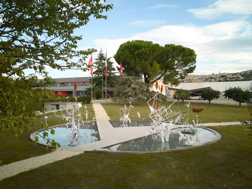 MARSHY, termine che in inglese si riferisce ad un ambiente palustre, si presenta come uno specchio d’acqua del diametro di 12 metri, popolato da arbusti, bambù, fiori e da una colonia di 200 volatili. Il tutto costruito interamente attraverso il riutilizzo degli scarti della produzione aziendale e il coinvolgimento in varie fasi di tutto il mondo Elica, che ha una piattaforma produttiva articolata in sette siti tra Italia, Polonia, Messico e Cina, con oltre 3000 lavoratori.