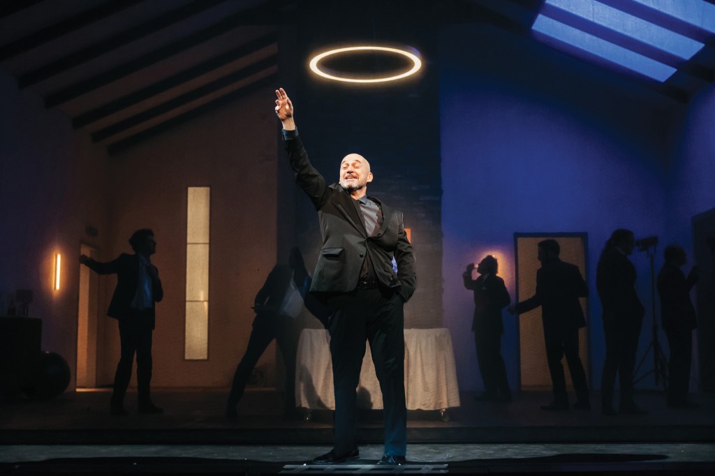 Ed è proprio la seduzione del male ad incantare sia i personaggi che gravitano attorno al tiranno che per svariati interessi lo assecondano, sia lo spettatore che resta abbagliato dall’oscurità senza riuscire a condannarlo, soprattutto durante la sua ascesa, quando sembra che nulla possa ostacolare il suo piano. L’accattivante e ipnotico Paolo Pierobon, ci getta in faccia l’ombra del protagonista e la sua oscurità alla massima potenza, le azioni dettate da essa, la sfrontatezza, il modo plateale con cui raggira e tradisce gli altri, le manipolazioni orchestrate per piegare la volontà altrui, l’assoluta mancanza di empatia verso le sue vittime, che siano uomini, donne o bambini. Riccardo non ha pietà che non di sé stesso, non giustifica che sé stesso, questo tirannico narcisismo rappresenta la massima fascinazione per il pubblico che si riconosce in quell’ “ombra”, che specchia la propria in quell’oscurità, osservandone le azioni ignobili in un silenzio atterrito, apprezzando l’intelligenza, la “furbizia maligna” che in qualche modo ammira, il desiderio di poter arrivare fino in fondo sulla scena come nel sogno del suo riscatto maligno.