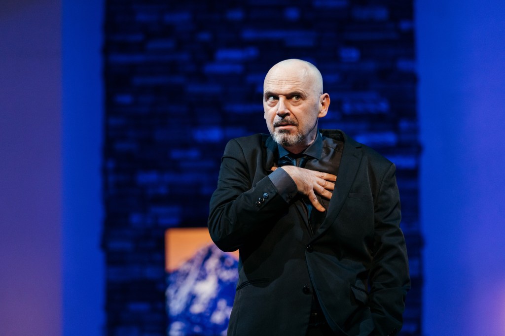 La versione dell’opera diretta dall’affermata regista ungherese Kriszta Székely con l’adattamento del testo di Armin Szabó-Székely, restituisce un dramma calato in una dimensione contemporanea, con un linguaggio che nell’adattamento riesce a fondere il basso con l’alto, attraverso parole che stregano, manipolano e sgomentano ma riescono a collocare la storia in un contesto qualsiasi di uno stato del mondo. Il racconto è universale, la trama racconta l’ascesa di un qualsiasi tiranno, uno di quelli così familiari a tutte le generazioni e a tutte le epoche, mostrandoci come oggi, attraverso la falsificazione delle notizie, la volgarità dei talk-show, il bombardamento mediatico apparentemente incontrollato, la gogna nei social, un uomo riesca a convincere un popolo e il suo entourage, riesca a trasformare la menzogna, l’inganno in una credenza, d’altronde senza fede, sottolinea lui stesso, il potere è perduto, non esiste. L’adattamento all’era digitale avvicina la scena alla platea e ci svela così i pericoli che incombono sulla nostra società, sulla politica che crediamo grandiosa e inarrivabile ed invece è nei fatti volgare e tutt’altro che elevata, soprattutto quando è affidata a personaggi ambigui che sono intimamente votati al male e alla brama di potere.