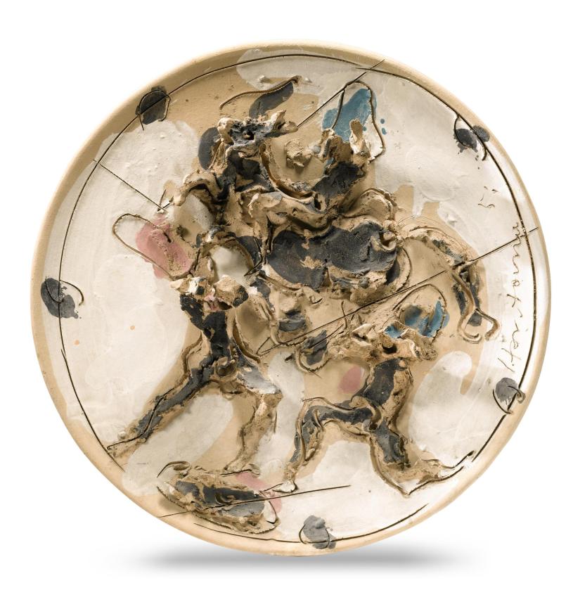 In mostra le sue perforazioni su carta come Concetto spaziale (1966-1968 e 1964-1965) e i lavori in terracotta come Concetto Spaziale (1962-1963).