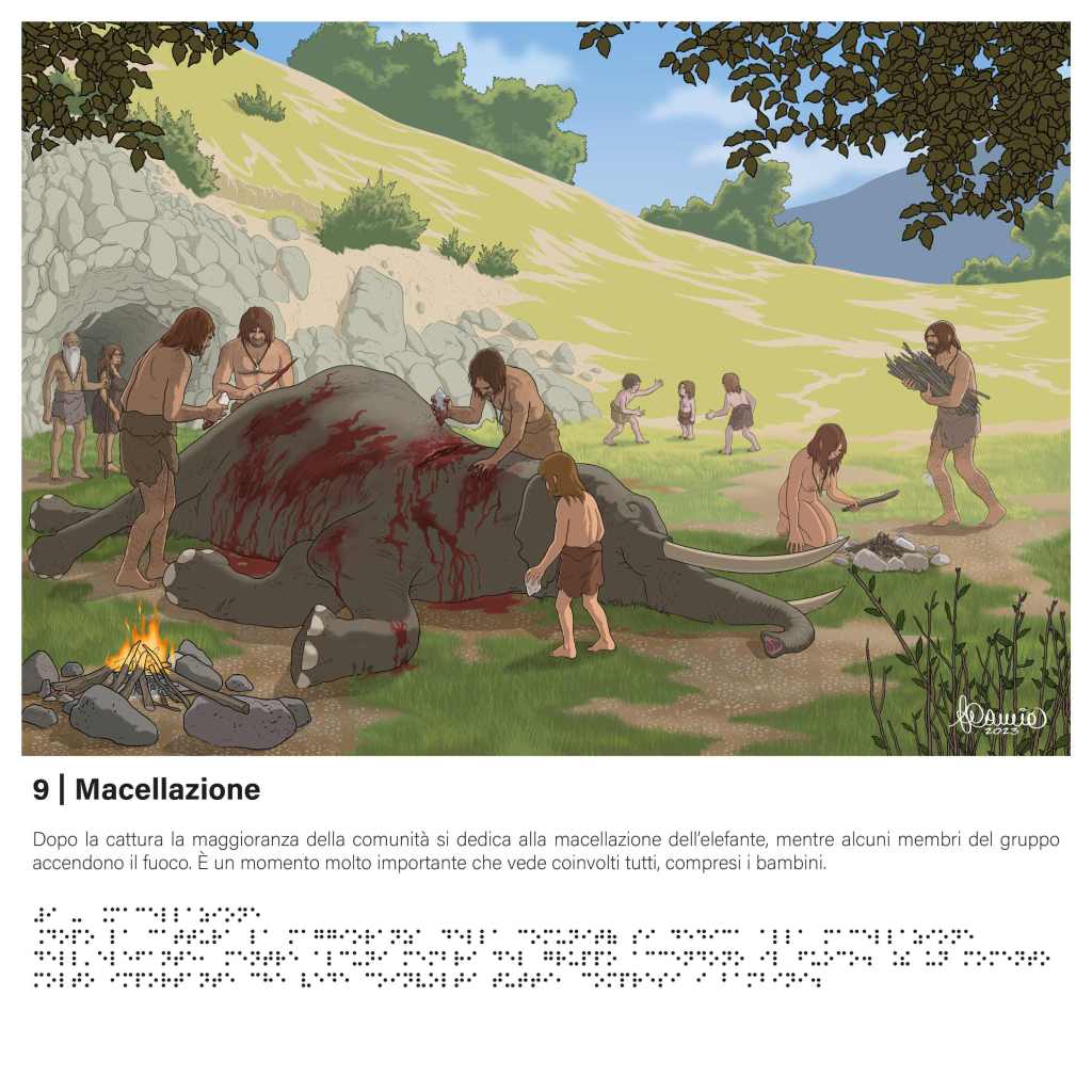 Al Museo di Casal de’ Pazzi un nuovo percorso espositivo multisensoriale permanente presenta la vita quotidiana di un gruppo di neandertaliani ricostruita su tavole illustrate a rilievo