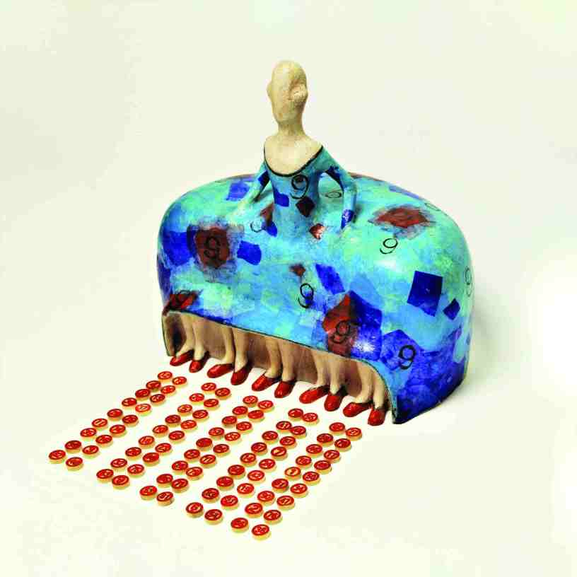 Le sculture disseminate per il museo, fantastiche intromissioni contemporanee in una preziosa collezione di arredi e oggetti d’epoca, riecheggiano in maniera anche grottesca gli orologi da camino in uso nel XVIII secolo, nei quali Carolina si trasforma di volta in volta in treno, mostro bicefalo, centopiedi simbolico delle mille possibilità mai realizzate.