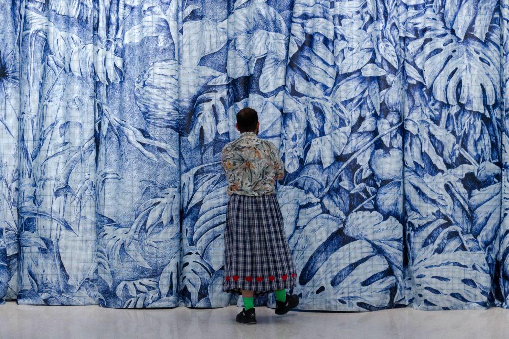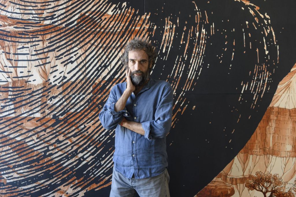 Ruffo disegna con una penna bic una foresta primordiale creando un immenso sipario (700 metri quadri) che accoglie i visitatori e circonda tutto il perimetro dell’ambiente (Primordial Forest), con immagini di piante e minerali, che rimandano all’epoca in cui la giungla tropicale occupava la maggior parte delle terre emerse. Taglia la sala una grande struttura autoportante (4 metri per 21) sulla quale raffigura una porzione del Grand Canyon, dipingendo con l’inchiostro su carte intelate con la tecnica del camaïeu (vari toni della stessa tinta, nell’opera la terra di Siena bruciata).