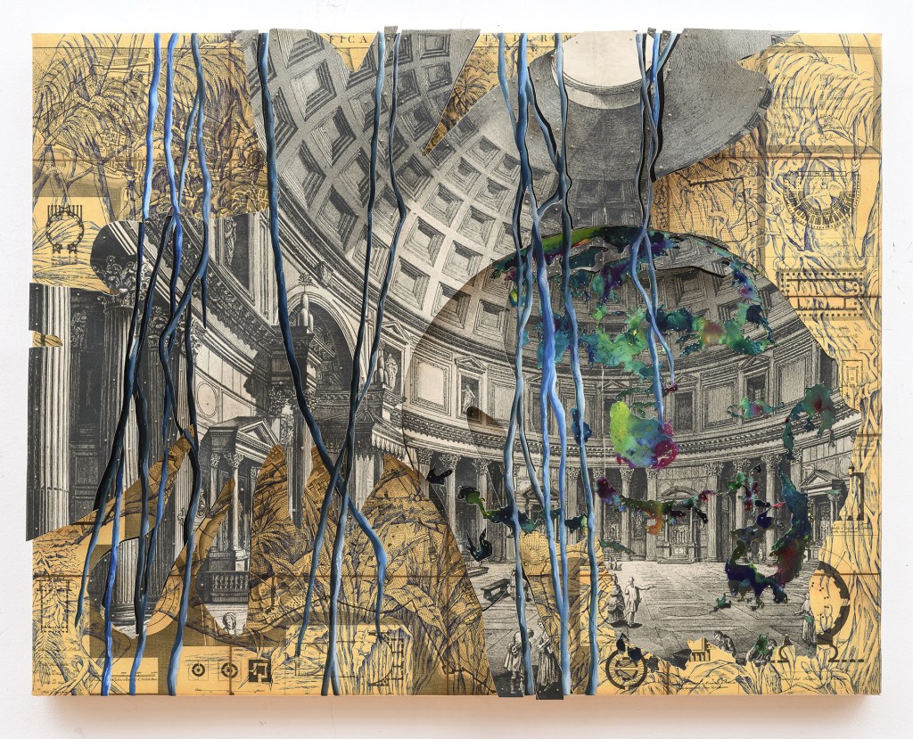 L’artista parte dalla mappe storiche della città ad opera di Giovanni Battista Nolli (1701-1756) e di Luigi Canina (1775-1856), innestando al loro interno squarci di inattesi panorami naturali, un percorso tra storia e preistoria nel territorio romano permettendo di spaziare tra le profondità marine (Antropocene 77, Rome Under the Sea), alla foresta primordiale (Antropocene 92, Rome Covered by a Primordial Forest) e poi al teatro di grandi costruzioni architettoniche (Antropocene 51, Rome Imperial Period; Antropocene 53, Rome Porta Maggiore e altre). Un mosaico sui momenti storici e sui futuri ipotizzabili, mostrando trasformazione e conseguenza di ogni intervento umano, utilizzando una tecnica ad intagli su carta intelata, disegni a penna, a olio, rilievi alla ricerca di un’armonia compositiva che traghetti verso un’osservazione profonda e meditata.