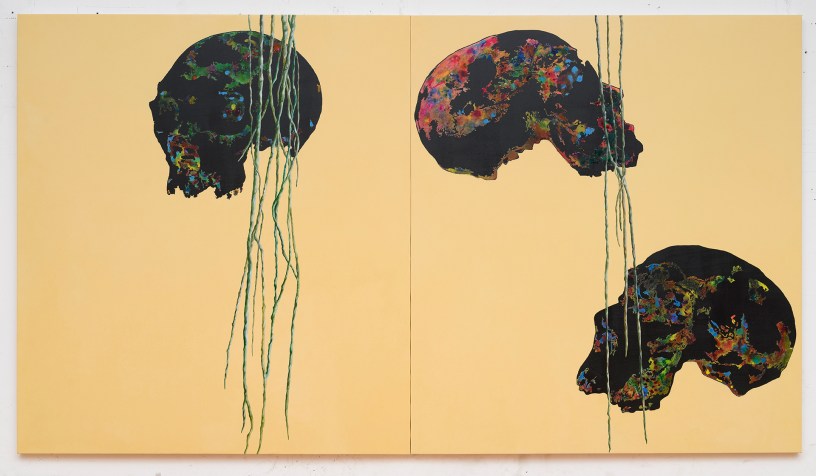 Il percorso procede nell’Antropocene: l’epoca geologica in cui l’ambiente terrestre nel suo svolgersi ed evolversi secondo le sue caratteristiche fisiche, chimiche e biologiche è condizionato dagli effetti dell’azione umana. Come ha scritto Rebecca Wragg Sykes, paleontoclimatologa che si è servita del ‘calendario cosmico’ di Carl Sagan, nel saggio Neanderthal, vita, arte, amore e morte “Se riduciamo i 13,8 miliardi di anni dell’Universo a un periodo di dodici mesi, i dinosauri compaiono verso Natale, mentre i primi Homo sapiens arrivano solo pochi minuti prima dei fuochi d’artificio di Capodanno”. Ed è proprio a questa manciata di ultimi minuti della storia del nostro pianeta che sono dedicate le tre sale successive, quelle in cui l’artista esplora la Terra dopo l’intervento umano cercando la “meraviglia”.