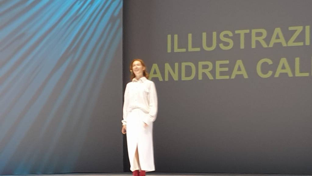 La scena è allestita con schermi bianchi, anche l’attrice, Cristiana Capotondi, è vestita di bianco come se entrambi siano un tutt’uno dove le immagini disegnate e la voce dell’attrice incarnino le emozioni profonde condivise con l’ultima generazione perché possano tradursi in un lascito della memoria emotiva.