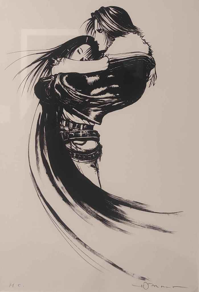 L’appuntamento romano si arricchisce di un elemento di straordinario interesse: l’esposizione, per la prima volta in Italia, di opere originali nate dalla collaborazione con Michael Moorcock, gigante della letteratura fantastica e creatore di Elric di Melnibonè. Sei tavole che svelano l’incontro tra due immaginari potenti, quello narrativo di Moorcock e quello visivo di Amano, e che gettano nuova luce sulla genesi creativa che avrebbe poi guidato il Sensei nel dare forma ai mondi di Final Fantasy.