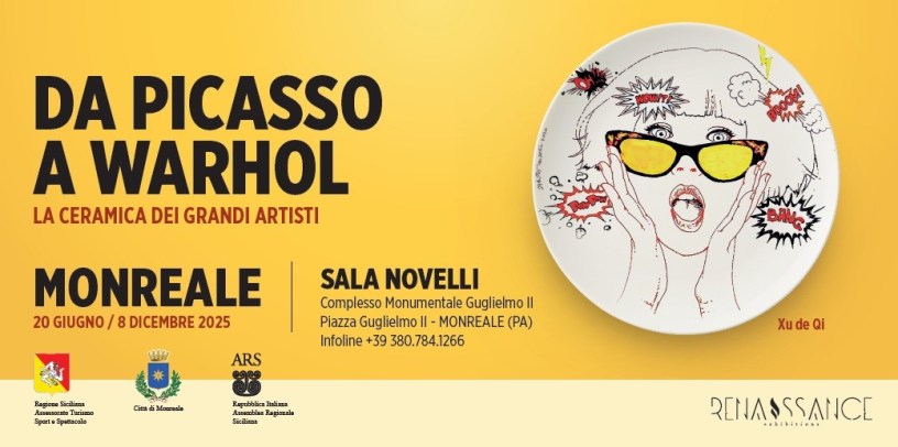 A Monreale dal 19 giugno, presso la sala Novelli del complesso monumentale Guglielmo II a Monreale (PA), si svolgerà la presentazione alla stampa della mostra: “Da Picasso a Warhol, le ceramiche dei grandi artisti”. L’esposizione, promossa dall’Amministrazione comunale di Monreale e realizzata in collaborazione con la società produttrice Renaissance srl, raccoglie le opere di alcuni dei più importanti protagonisti della scena artistica internazionale che si sono cimentati nell’uso della ceramica, della terracotta e della porcellana. La mostra aprirà al pubblico il 20 giugno 2025.