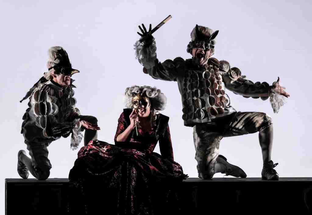I sontuosi costumi, firmati da Antonio Marras, trasportano lo spettatore in un “’700 immaginario” con audaci inserti contemporanei, “un lusso che si fa notare” e che inonda il palco di parrucche, corpetti e sbuffi, mantenendo sempre misura e gusto. La scena è un salone trasfigurato da proiezioni suggestive, dove si muovono un cast d’eccezione: Riccardo Buffonini, Matteo de Mojana, Alessandro Lussiana, Ginestra Paladino, Umberto Petranca, Luca Toracca e la giovane Valeria Andreanò nel ruolo di Constanze, la moglie di Mozart.