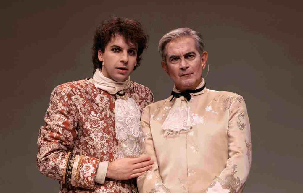 In scena, Ferdinando Bruni è un Salieri magistrale che, attraversando le età della vita come un “deus ex machina”, evoca dal passato i personaggi della “sua” storia. Accanto a lui, Daniele Fedeli, già rivelazione in “Lo strano caso del cane ucciso a mezzanotte”, veste i panni di un Mozart “giovanilmente ingenuo e animato”, irriverente e sboccato, ma in cui risplende la “unicità del genio”.