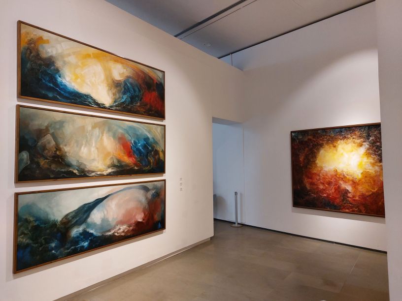 Le opere esposte testimoniano la sua padronanza della pittura a olio e l’attenzione alla storia dell’arte, rivelando un forte legame con la tradizione e insieme la capacità di reinterpretarla con sguardo personale, in una pittura sospesa tra memorie iconiche e astrazione.