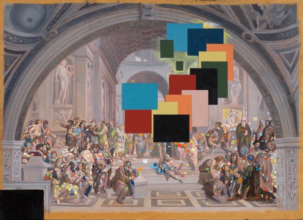 Opere come “La perla. L’infanta Margarita d’Austria secondo Velázquez” (1981), “La scuola di Atene / El incendio del Borgo” (1979), incarnano l’equilibrio tra mistica e modernità, spiritualità e fisica quantistica. Una fusione tra Rinascimento e Meccanica subatomica che resta uno dei capitoli più originali e meno indagati della sua produzione, la mostra lo valorizza con rigore museografico, senza indulgere alla spettacolarizzazione che spesso accompagna il nome dell’artista.