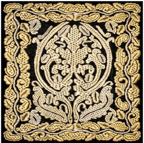 Accanto alle immagini fotografiche, la mostra include installazioni tridimensionali – un arco di trionfo, una colonna, un paravento – che traducono il linguaggio del ricamo in forme spaziali, sottolineandone la dimensione scultorea e architettonica. Il filo diventa struttura, il punto cucito si fa ritmo, e l’ornamento si trasforma in spazio attraversabile. Il tesoro ricamato delle Regine non propone una lettura nostalgica della tradizione, ma una sua riattivazione contemporanea.