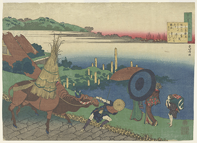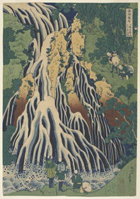 Tra i protagonisti della sua arte vi è senza dubbio l’acqua, che nelle sue rappresentazioni – dalla Grande Onda alle infinite varianti della serie Un viaggio tra le cascate di varie province (Shokoku taki meguri) – diventa un flusso continuo e impetuoso, che si dissolve in vortici e spruzzi fino a placarsi in superfici piane e silenziose. Ne nasce un ritmo, un’armonia che sembrano trascinarci dentro l’immagine, in un’atmosfera quasi musicale, come quella de La Moldava di Smetana.